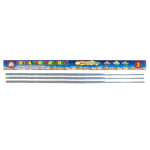 Бенгальский огонь 150 сек, Цветопламенный, Ассорти, 40 см, 3 шт., СБ400Ц3