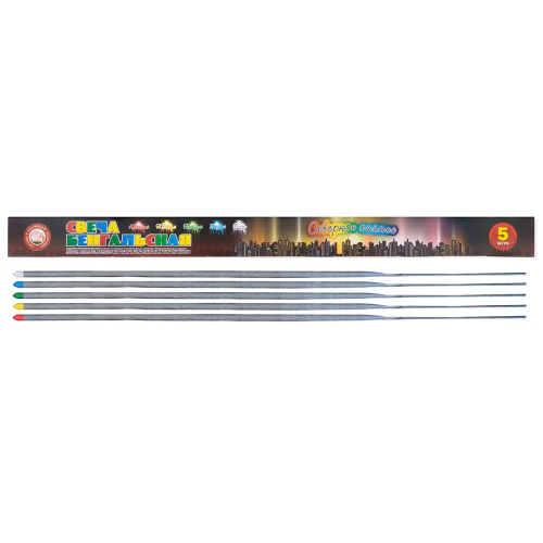 Искристые бенгальские огоньки – один из самых узнаваемых атрибутов праздника.Магия огня завораживающе преображает любое торжество, а ореол волшебных искорок наполняет праздничную атмосферу ожиданием чудес и весельем.Бенгальские свечи замечательно украсят Новый Год,а также любой другой праздник. Применение: Удерживайте изделие за свободную от пиротехнического состава часть в вытянутой руке или вертикально зафиксировав её в устойчивом основании. Не наклоняясь над ней подожгите верхний кончик. ОГНЕОПАСНО!Применять только на улице в безветренной атмосфере.Запрещено: использовать в состоянии опьянения, направлять свечу непосредственно на людей или предметы, радиус опасности не более 0,5м, производить с изделием любые действия, не предусмотренные настоящей инструкцией; использовать изделие с повреждениями или истекшим сроком годности, бросать в огонь. Хранить в сухом помещении, t° не выше +30С,вдали от приборов обогрева.