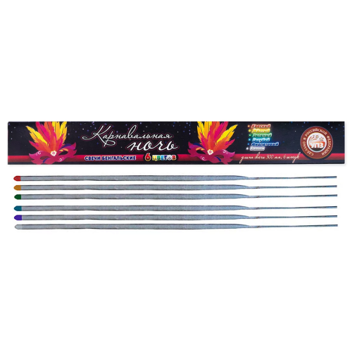 Бенгальский огонь 90 сек, Карнавальная ночь, Ассорти, 30 см, 6 шт., СБ300КН6