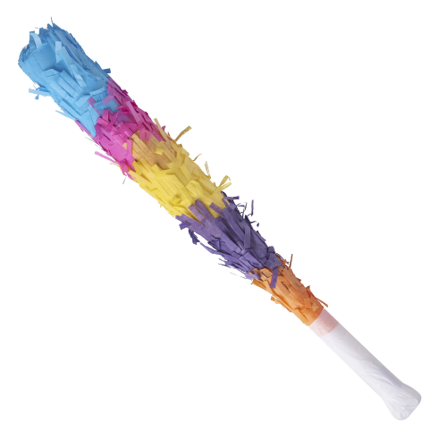 Яркая разноцветная бита для игры в пиньяту. Бита выполнена из плотного пластика с безопасным наконечником и украшена цветной резаной бумагой тишью.