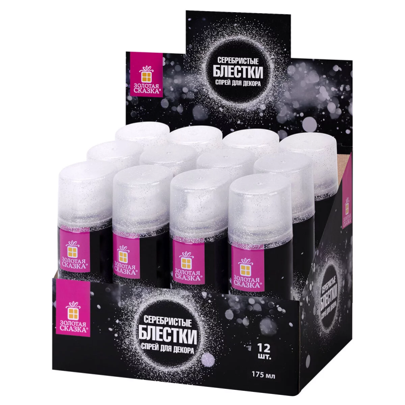 Блестки для декора в спрее, 175 мл, 50 г, Серебро, 1 шт. , 592284