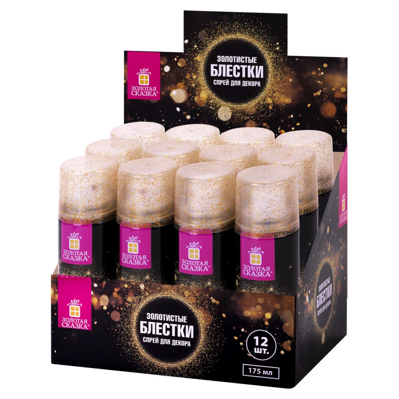 Блестки для декора в спрее, 175 мл, 50 г, Золото, 1 шт. , 592283