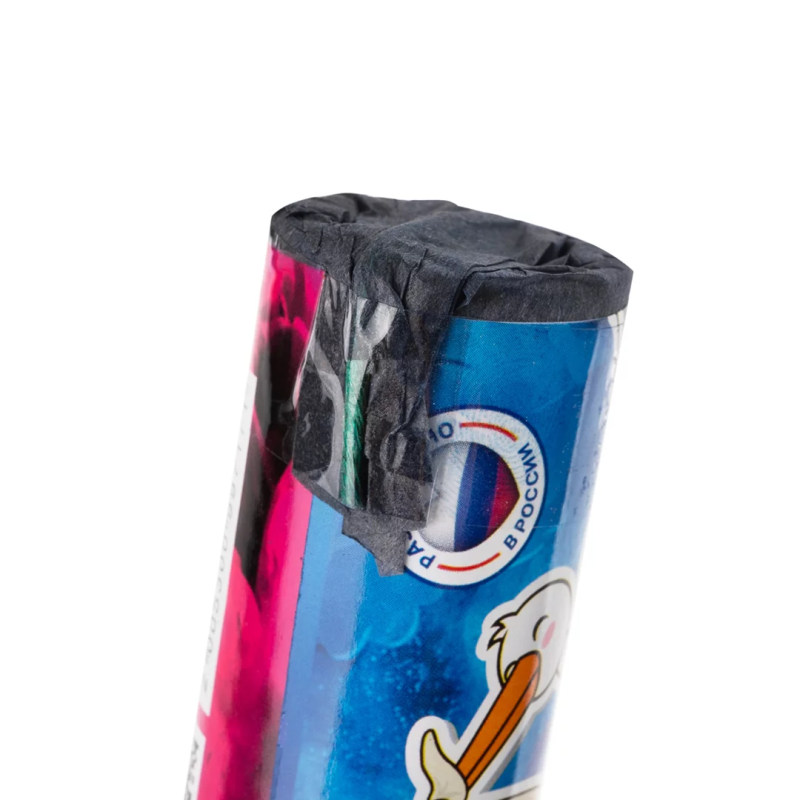 Примечание: дымы идентифицируются по цвету бумаги по нижнему краю упаковки: черная для мальчика и белая для девочки. Первый цвет дыма Белый 20 сек, затем Голубой.