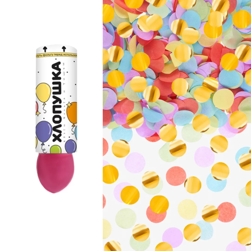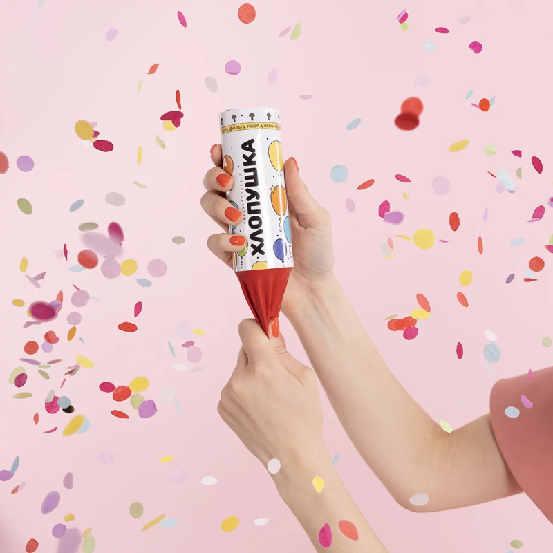 Хлопушка с красочным конфетти сделает любой праздник ярче, а фото- и видео-съемку еще более эффектной.