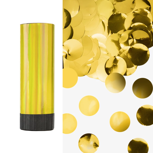 Хлопушка пружинная (4/10 см), Круги фольга, Золото, Лазерная голография, 1 шт., 823176
