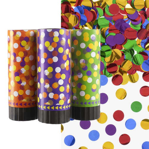 Хлопушка пружинная (4/10 см), Яркое конфетти, Круги фольга, Ассорти, 3 шт., 723020
