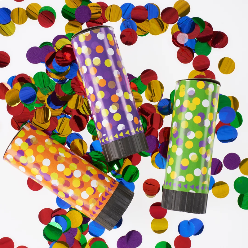 Хлопушка на пружинном механизме с красочным конфетти сделает любой праздник ярче, а фото- и видео-съемку еще более эффектной.
