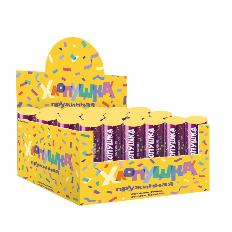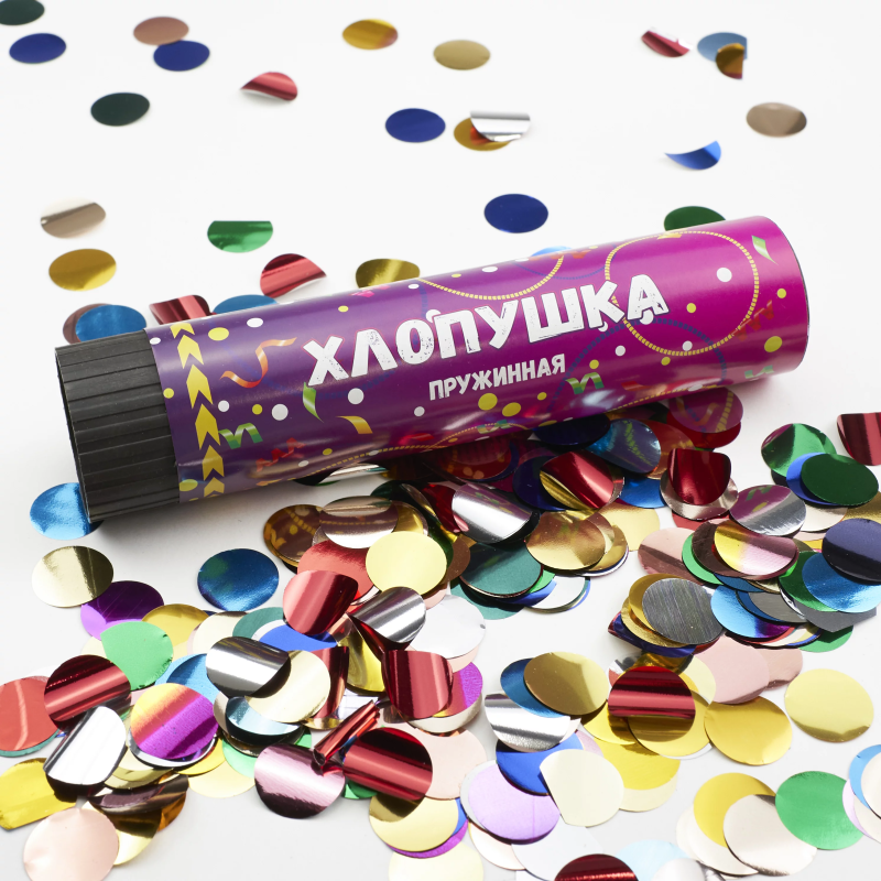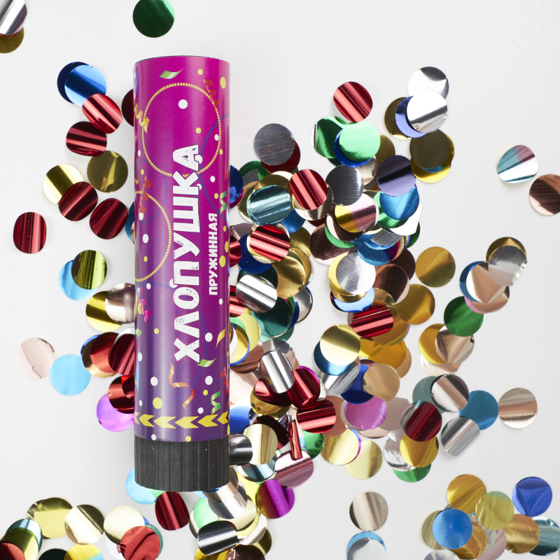 Хлопушка на пружинном механизме с красочным конфетти сделает любой праздник ярче, а фото- и видео-съемку еще более эффектной.