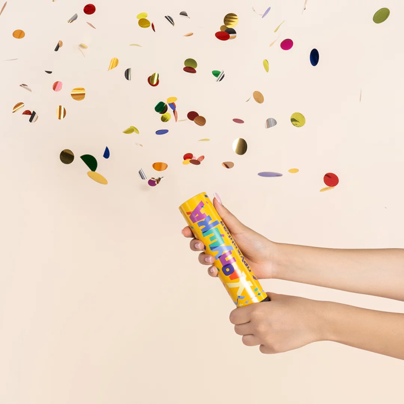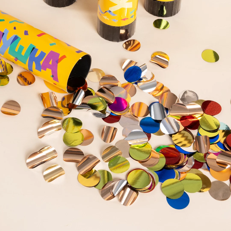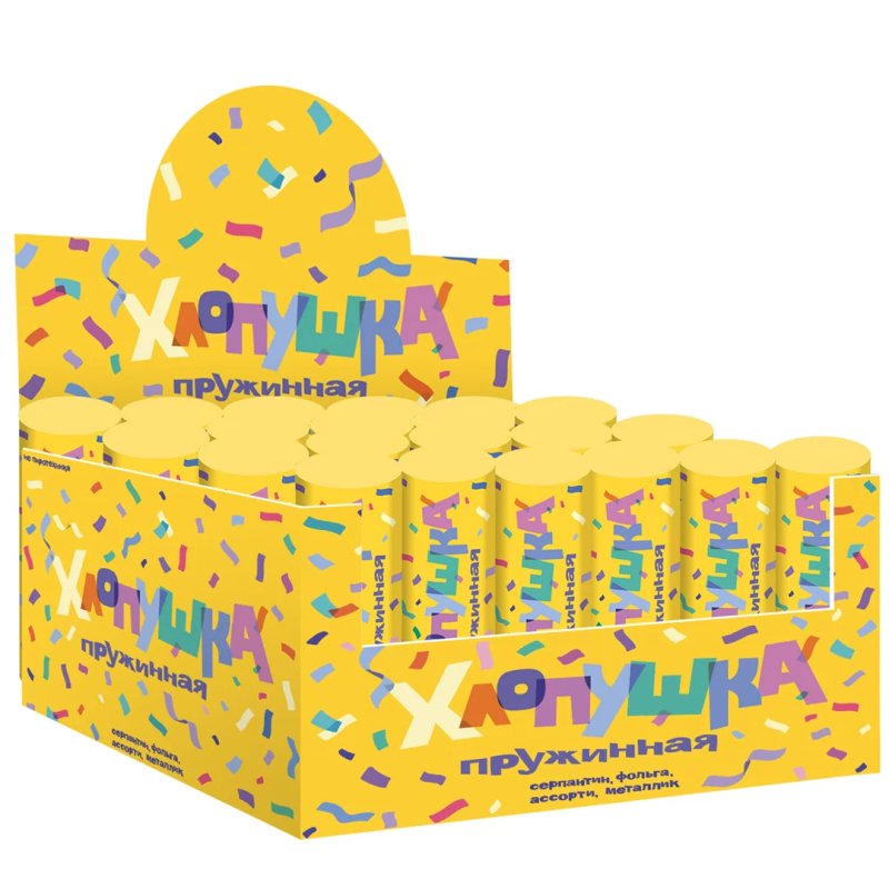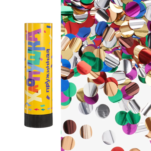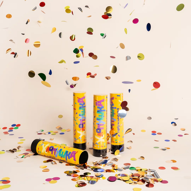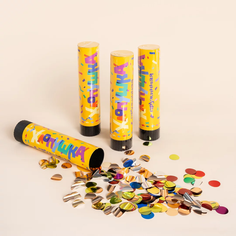 Хлопушка на пружинном механизме с красочным конфетти сделает любой праздник ярче, а фото- и видео-съемку еще более эффектной.