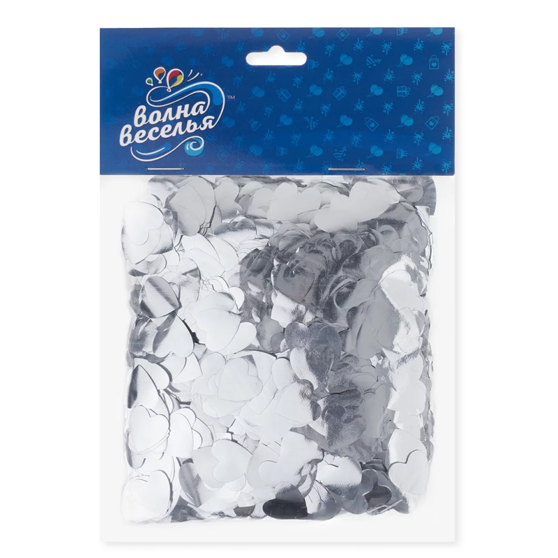 Конфетти фольга Сердце, Серебро, Металлик, 1,5 см, 50 г., 6015257