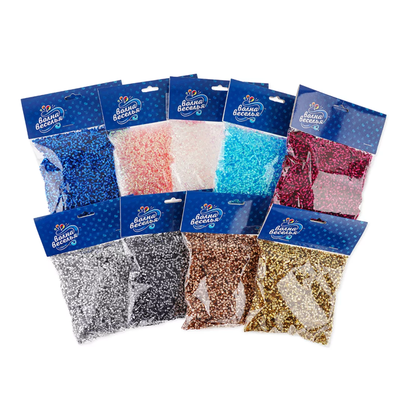 Мелко нарезанная фольга в виде цилиндрических трубочек. Используется для декорирования или создания "шара сюрприза".