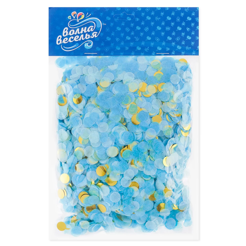 Конфетти купаж, Круг, фольга и тишью, Голубой микс, Металлик, 1 см, 50 г., 6015222