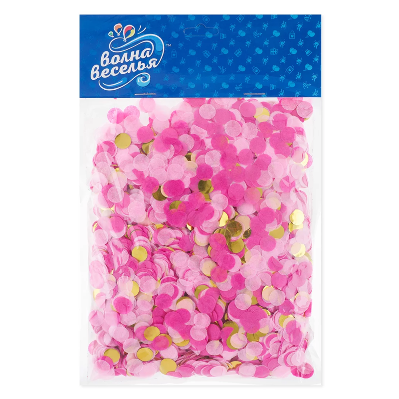 Конфетти купаж, Круг, фольга и тишью, Розовый микс, Металлик, 1 см, 50 г., 6015244
