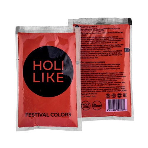 С фестивальной краской Холи Вы сможете устроить яркий фейерверк красок, который сделает любой праздник волшебным. Краски холи HOLI LIKE – это цветные порошки на основе натуральных ингредиентов. Уличные игры с красками холи будут незабываемой игрой для взрослых и детей, которые оставят самые яркие впечатления и положительные эмоции. Цветные краски холи это отличное дополнение к любому празднику: на день рождения, свадьбу, любой другой праздник или просто отдых на природе и фотосессии. Фестивальная краска холи Holi Like непожароопасна, нетоксична, не вредна для кожи и полностью безопасна для здоровья, а также легко отстирывается или стряхивается с одежды. Состав: Термически обработанная злаковая основа, пищевой краситель.
