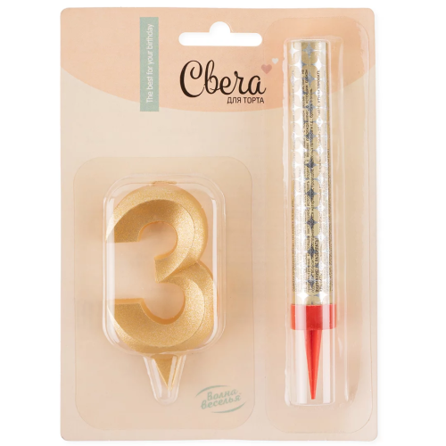 Набор, Фонтан и Свеча Цифра, 3 Грани, Золото, 10 см, 1 шт., 1773