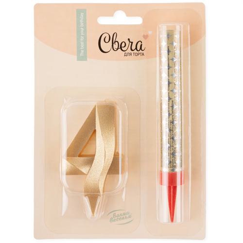 Набор, Фонтан и Свеча Цифра, 4 Грани, Золото, 10 см, 1 шт., 1774