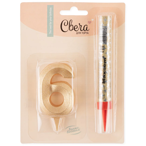 Набор, Фонтан и Свеча Цифра, 6 Грани, Золото, 10 см, 1 шт., 1776