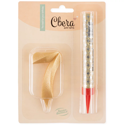 Набор, Фонтан и Свеча Цифра, 7 Грани, Золото, 10 см, 1 шт., 1777