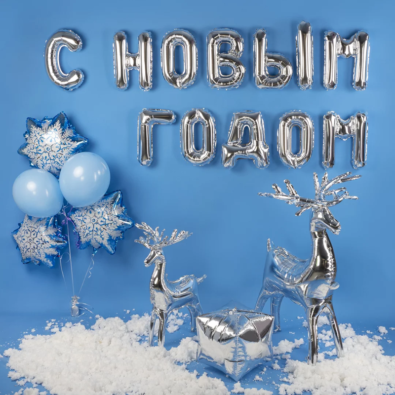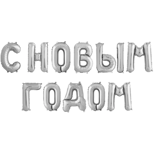 Набор шаров-букв (14''/36 см) Мини-Надпись С НОВЫМ ГОДОМ, Серебро, 1 шт. в уп., 195124