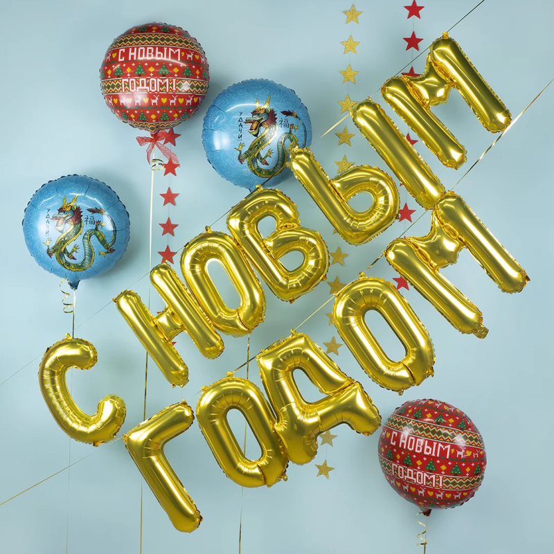 Набор шаров-букв (14''/36 см) Мини-Надпись С НОВЫМ ГОДОМ, Золото, 1 шт. в уп., 195123