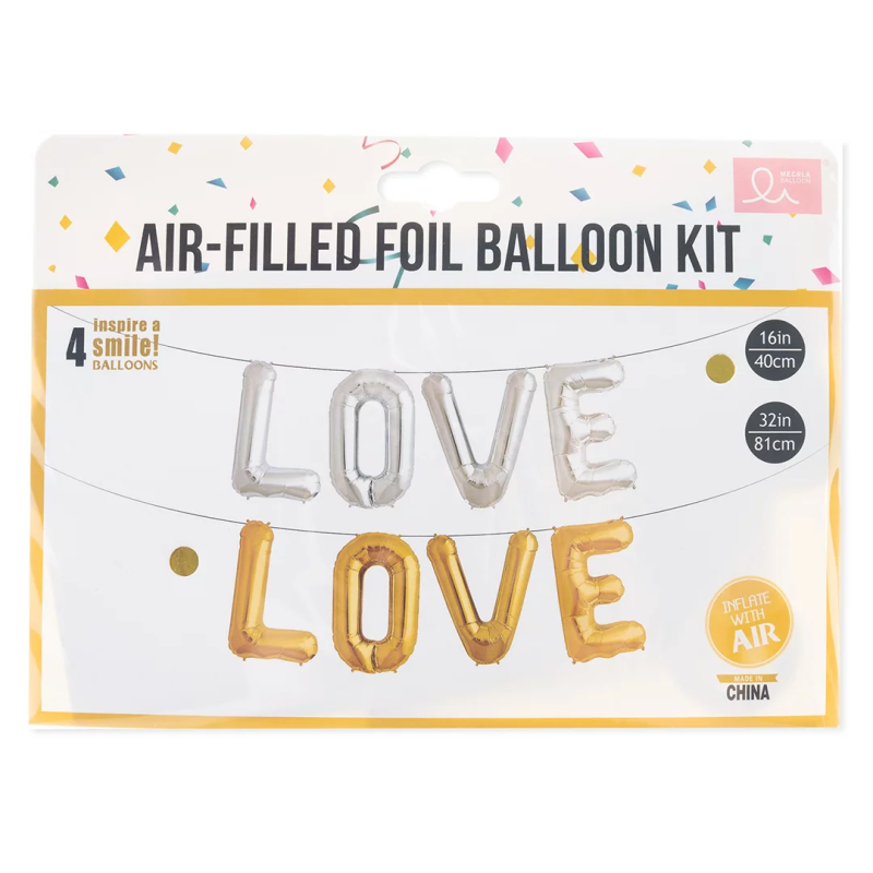 Набор шаров-букв (16''/41 см) Мини-Надпись "LOVE", Золото, 1 шт. в уп., 23837