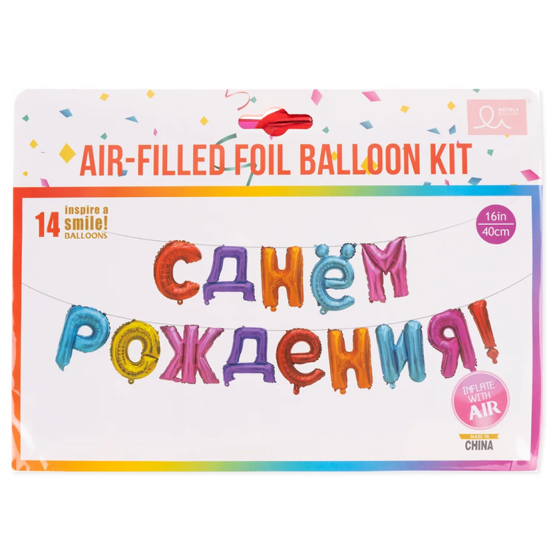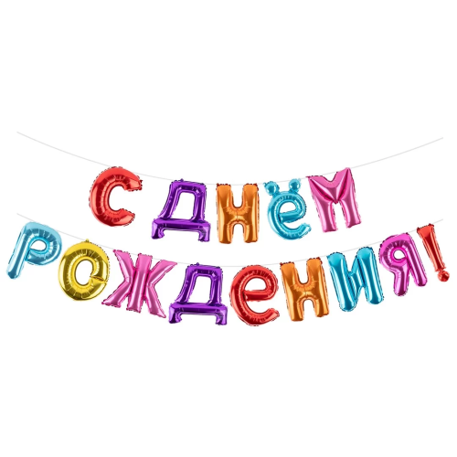 Набор шаров-букв (16''/41 см) Мини-Надпись "С Днем Рождения", Ассорти, 1 шт. в уп., 19006