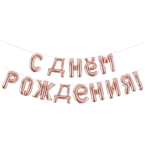 Набор шаров-букв (16''/41 см) Мини-Надпись "С Днем Рождения", Розовое Золото, 1 шт. в уп., 19007