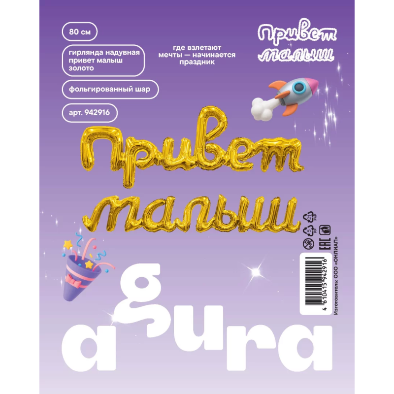 Набор шаров-букв (32''/81 см) Надпись "Привет, Малыш", Золото, 1 шт. в уп., 942916