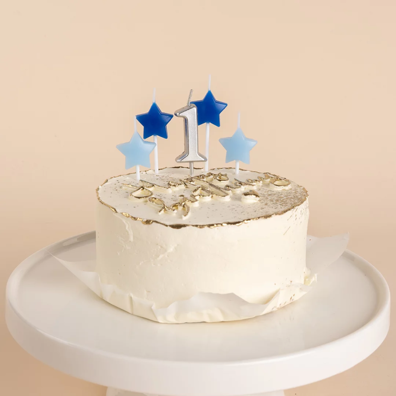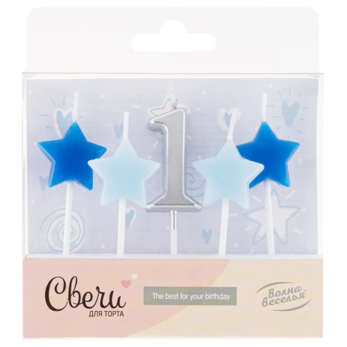 Набор свечей 1-ый День Рождения Мальчика, Серебро/Голубой, 2,5*3,5 + 4 см, 5 шт. с держат., 639282