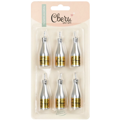 Набор свечей Фигура, Бутылка Шампанское, Серебро/Золото, Металлик, 1,5*4,5 см, 6 шт., 803291