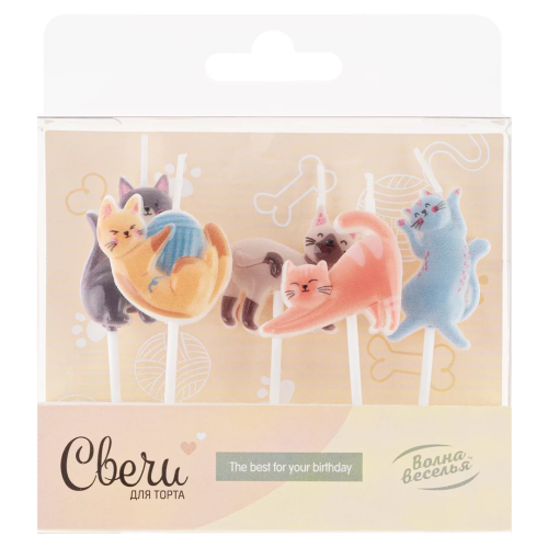 Набор свечей Фигура, Милые котята, Ассорти, 3*3,5 + 4 см, 5 шт. с держат., 639243