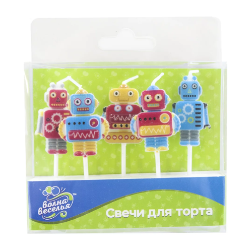 Набор свечей Фигура, Роботы, 7 см, 5 шт. с держат., 629288