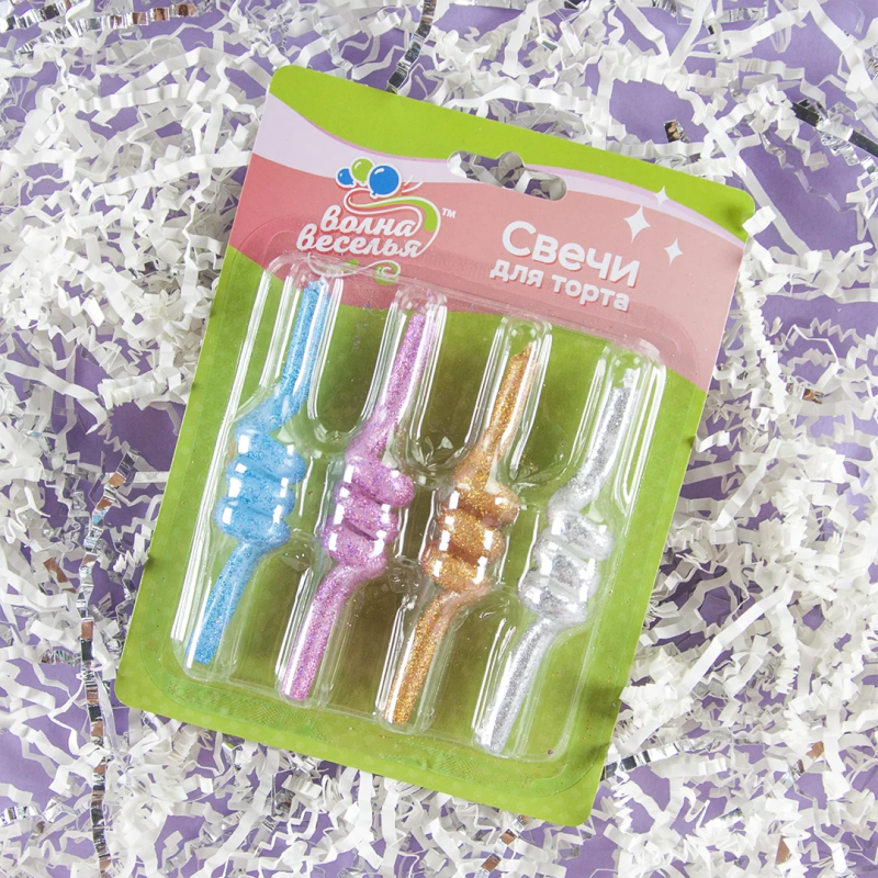 Набор свечей Фигура, Спираль, Ассорти, с блестками, 8 см, 4 шт., 802749