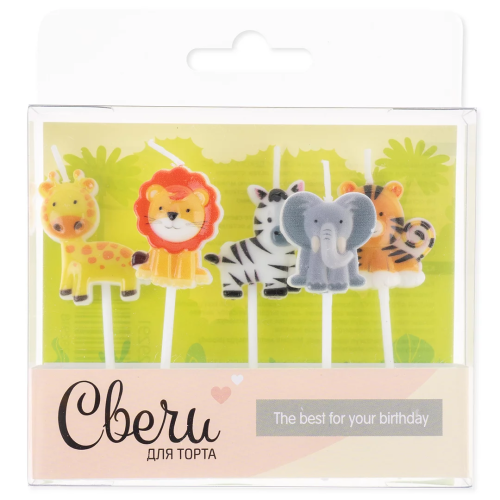 Набор свечей Фигура, Животные джунглей, 5 см, 5 шт. с держат., 629291