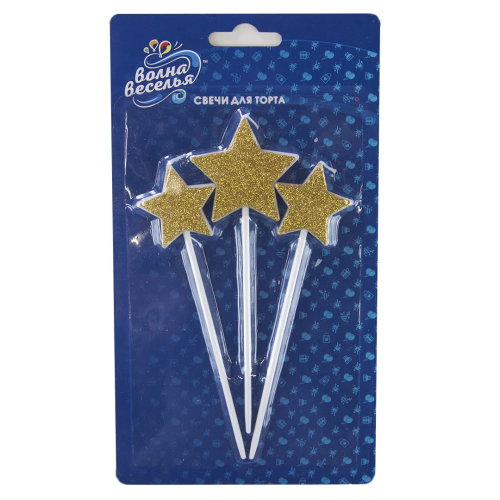 Набор свечей Звезда, Золото, с блестками, 8,5 см, 3 шт. с держат., 132522