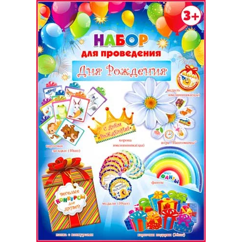 Оформительский набор с игровыми элементами станет оригинальным развлечением для проведения веселого Дня рождения.