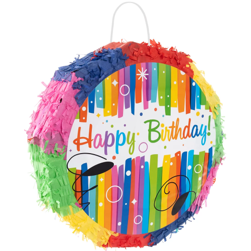 Пиньята складная, Круг, Happy Birthday (яркие полоски), 42*42*9 см, 1 шт. в упак. , 6012315-BX