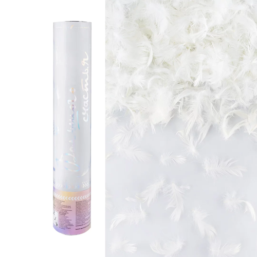 Пневмохлопушка (12/30 см), Большого Счастья, Перья, Белый, 1 шт., 823184