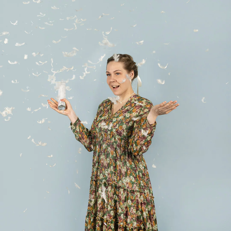 Пневмохлопушка с нежными и воздушными перьями сделает любой праздник ярче, а фото- и видео-съемку еще более эффектной