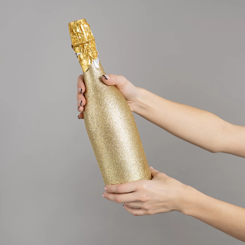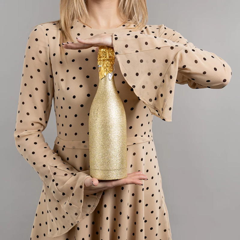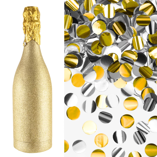 Пневмохлопушка (12/30 см), Бутылка Шампанское, Круги фольга, Золото/Серебро, 1 шт., 723039