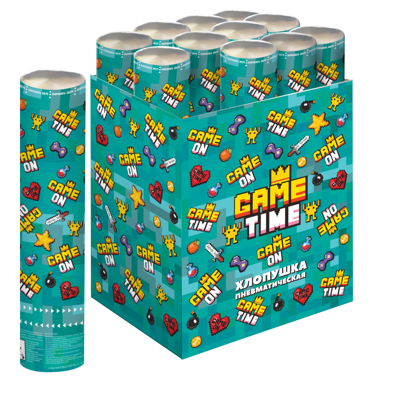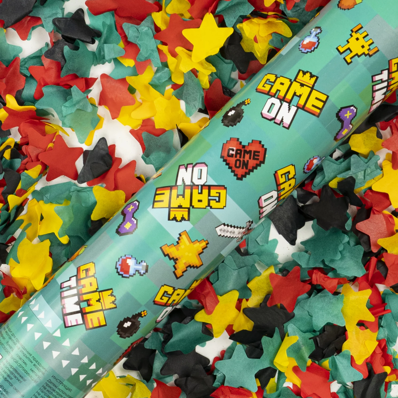 Пневмохлопушка (12/30 см), Game Time, Пиксели, Звезды тишью, Ассорти, 1 шт., 823158