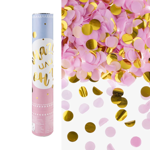 Пневмохлопушка (12/30 см), Гендер Пати, Круги фольга и тишью, Розовый/Золото, 1 шт., 823141
