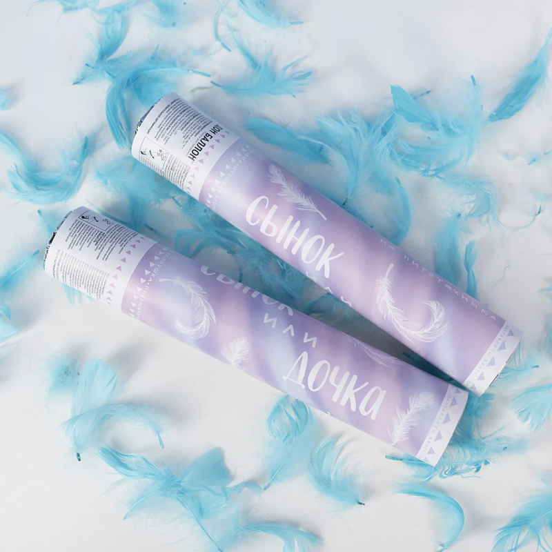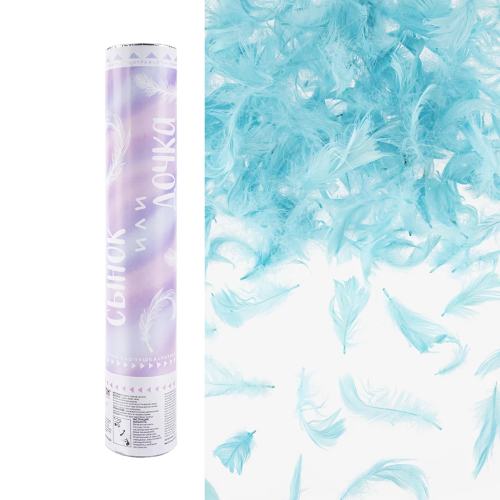 Пневмохлопушка (12/30 см), Гендер Пати, Сынок или Дочка?, Перья, Голубой, 1 шт., 823186