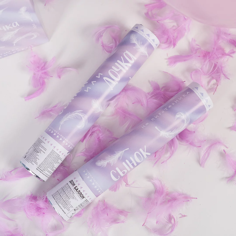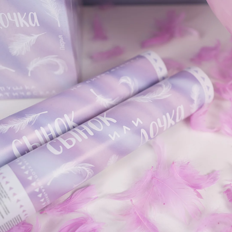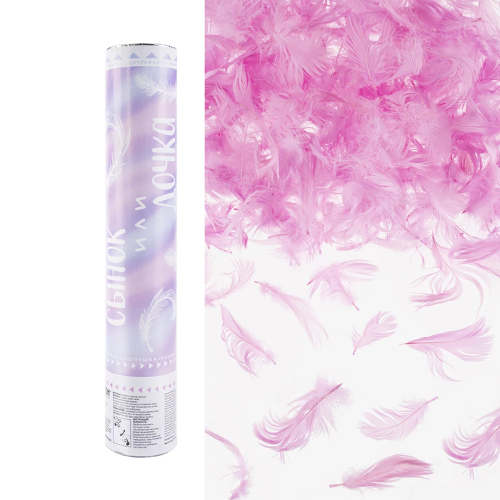 Пневмохлопушка (12/30 см), Гендер Пати, Сынок или Дочка?, Перья, Розовый, 1 шт., 823185