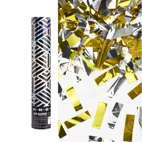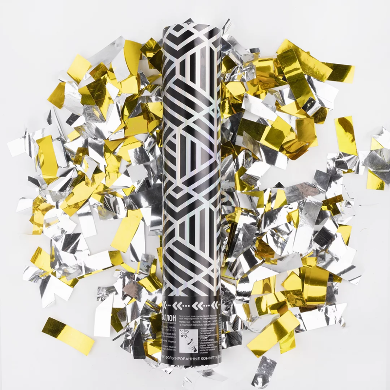 Пневмохлопушка (12/30 см), Геометрия, Прямоугольники фольга, Золото/Серебро, 1 шт., 823175