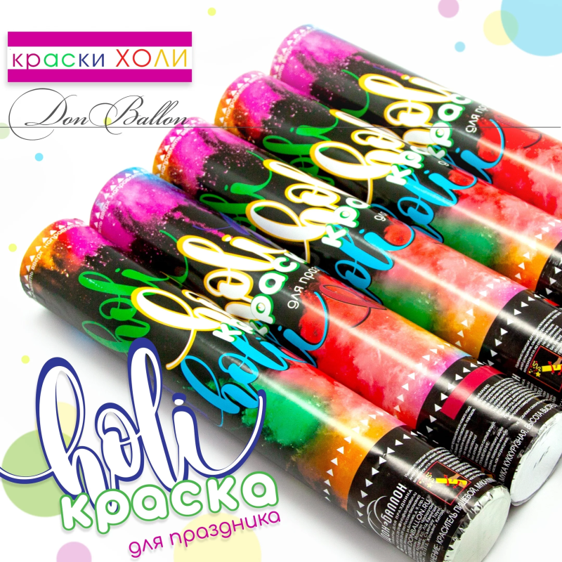 Пневмохлопушка с красочной и яркой краской Холи сделает любой праздник ярче, а фото- и видео-съемку еще более эффектной