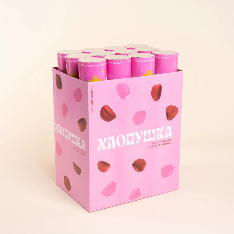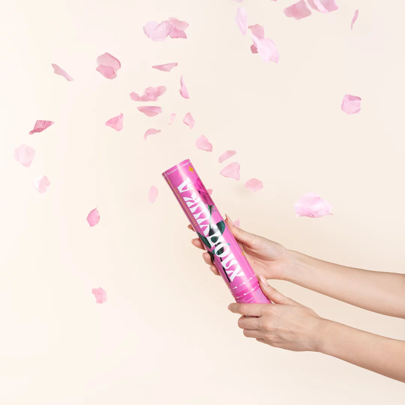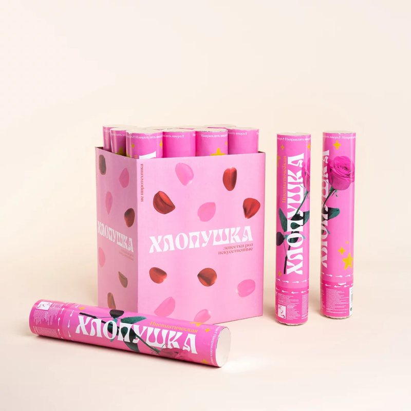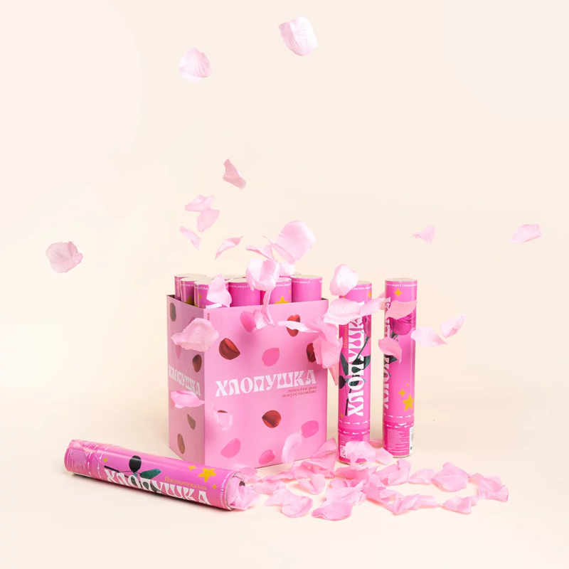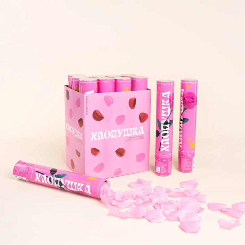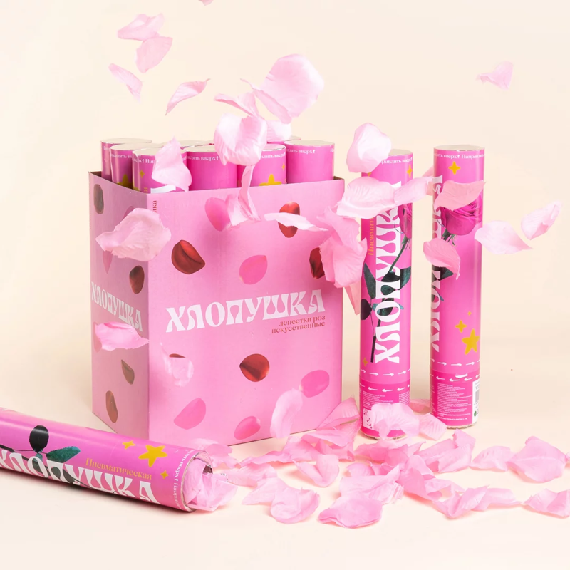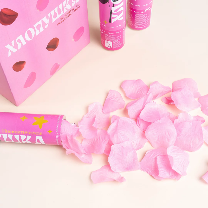 Пневмохлопушка с искусственными лепестками роз сделает любой праздник ярче, а фото- и видео-съемку еще более эффектной