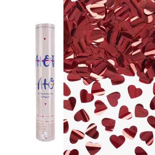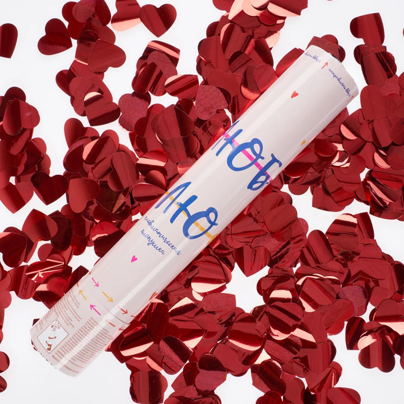 Пневмохлопушка (12/30 см), Люблю, Сердца фольга, Красный, 1 шт., 723028