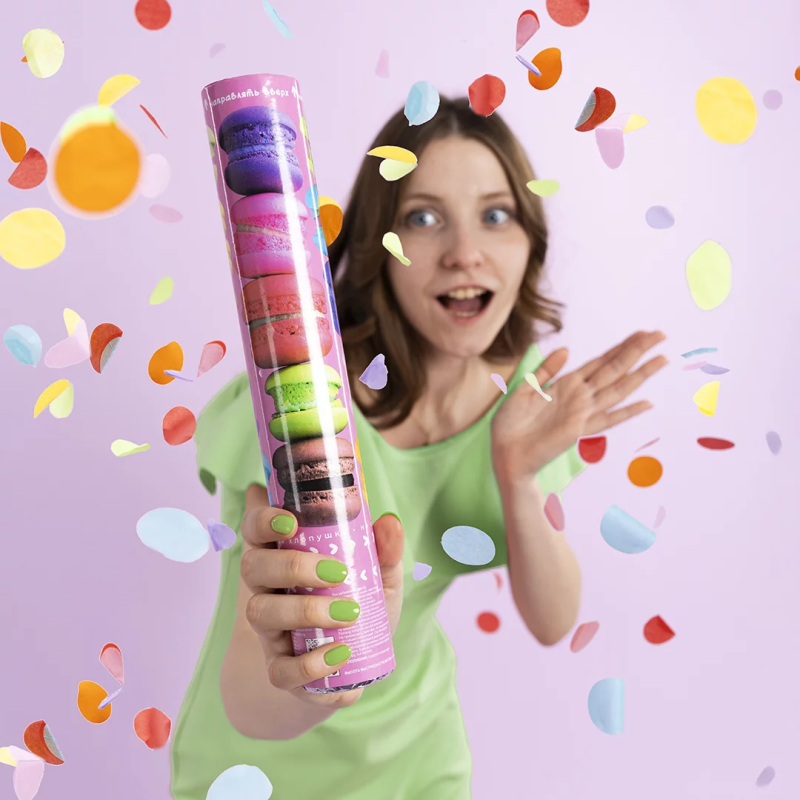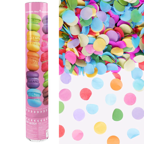 Пневмохлопушка (12/30 см), Макарунс, Круги тишью, Ассорти, 1 шт., 723034