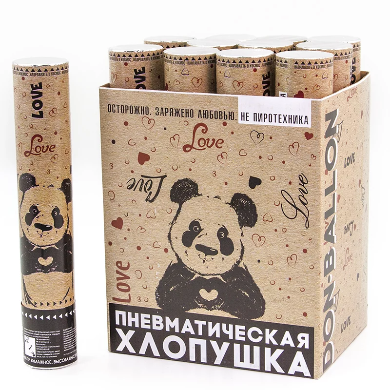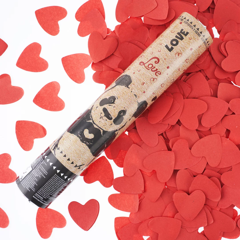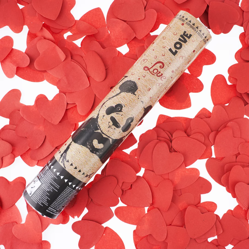 Пневмохлопушка (12/30 см), Панда, Сердца тишью, Красный, 1 шт., 823143